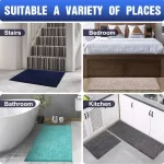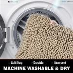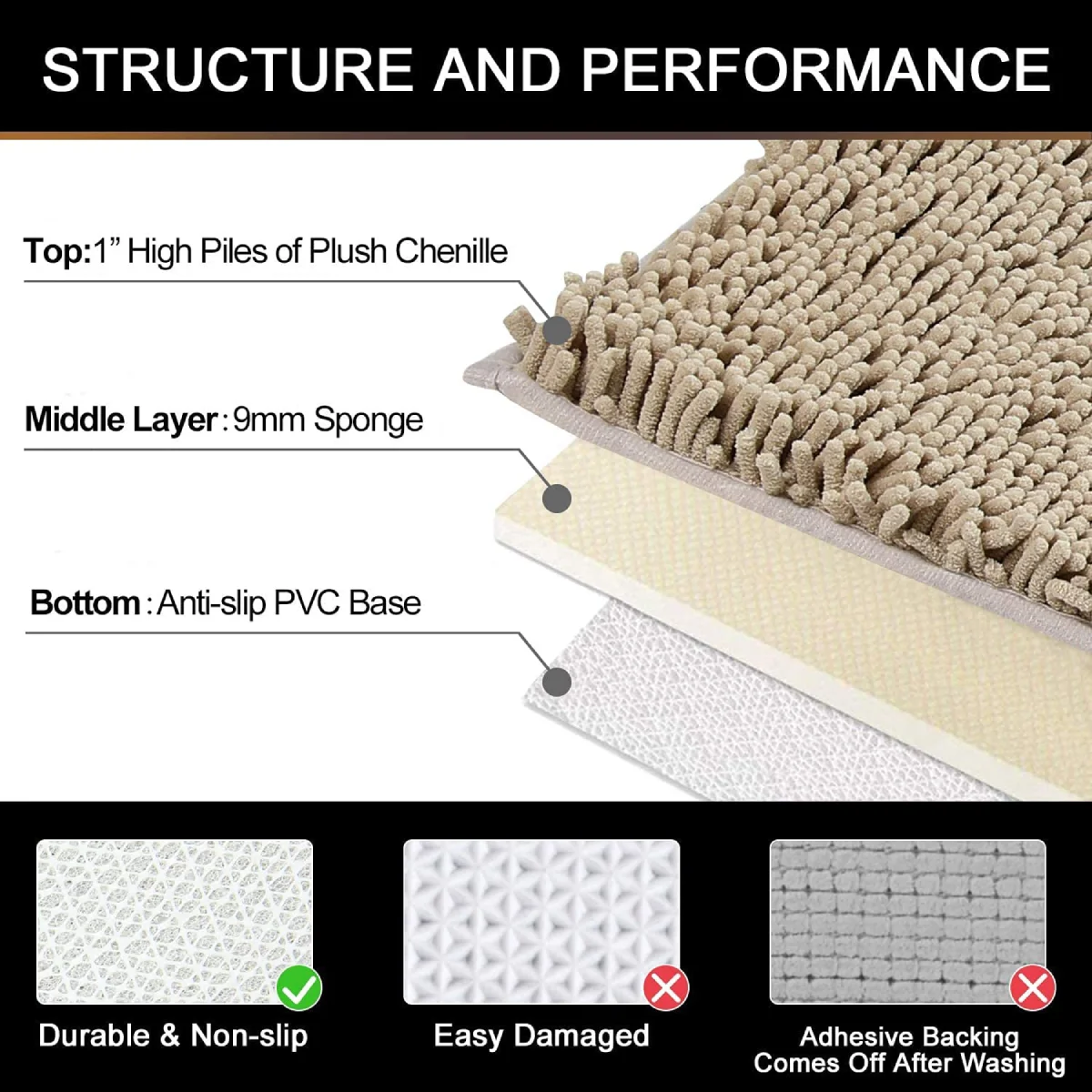 - MATERIAL – Thanks to its thick chenille microfiber, the bath mat envelops and cushions your feet, offering a warm, dry, and exceptionally comfortable place to stand. In addition to being placed in front of the bath or shower, this floor mat also works well in front of a vanity for standing ease when getting ready in the morning.