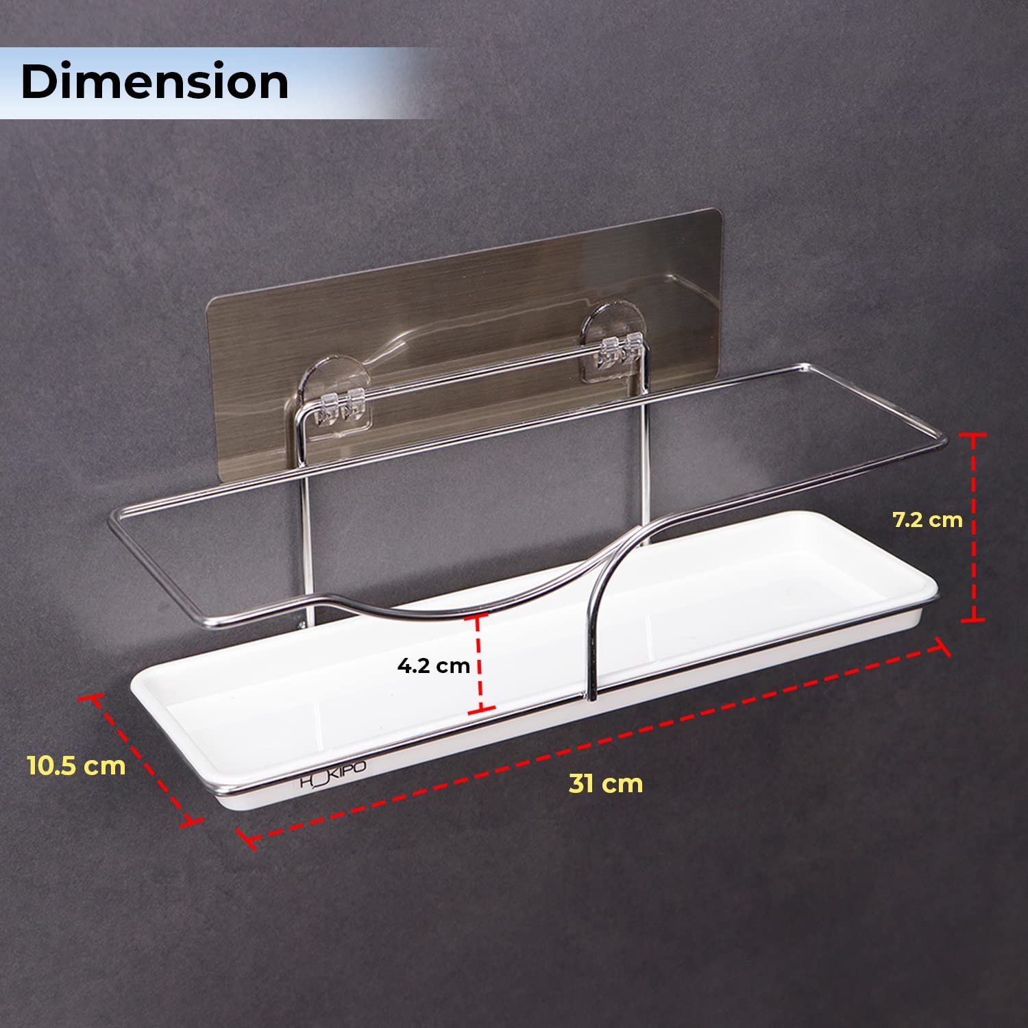 • DON’T: It does Not suit for uneven or rough surface. Dimension: 31 x 10.5 x 7.5 cm. Package Contents 1 Bathroom Storage Rack