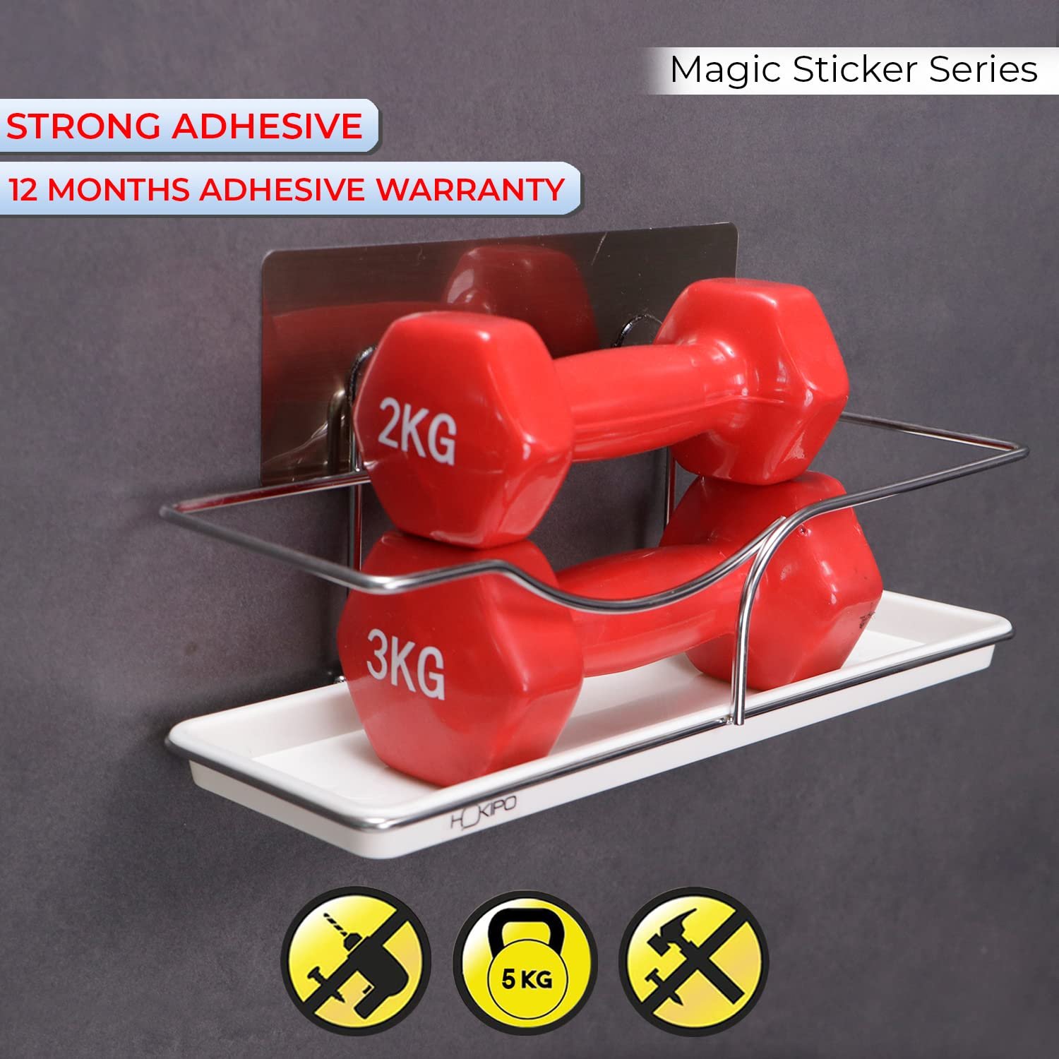 • DO : Press and Flat the magic sticker pad, squeeze the air out from middle to edge. Waiting for 24 hours then Hang the Tray on the Magic Sticker pad’s hooks.