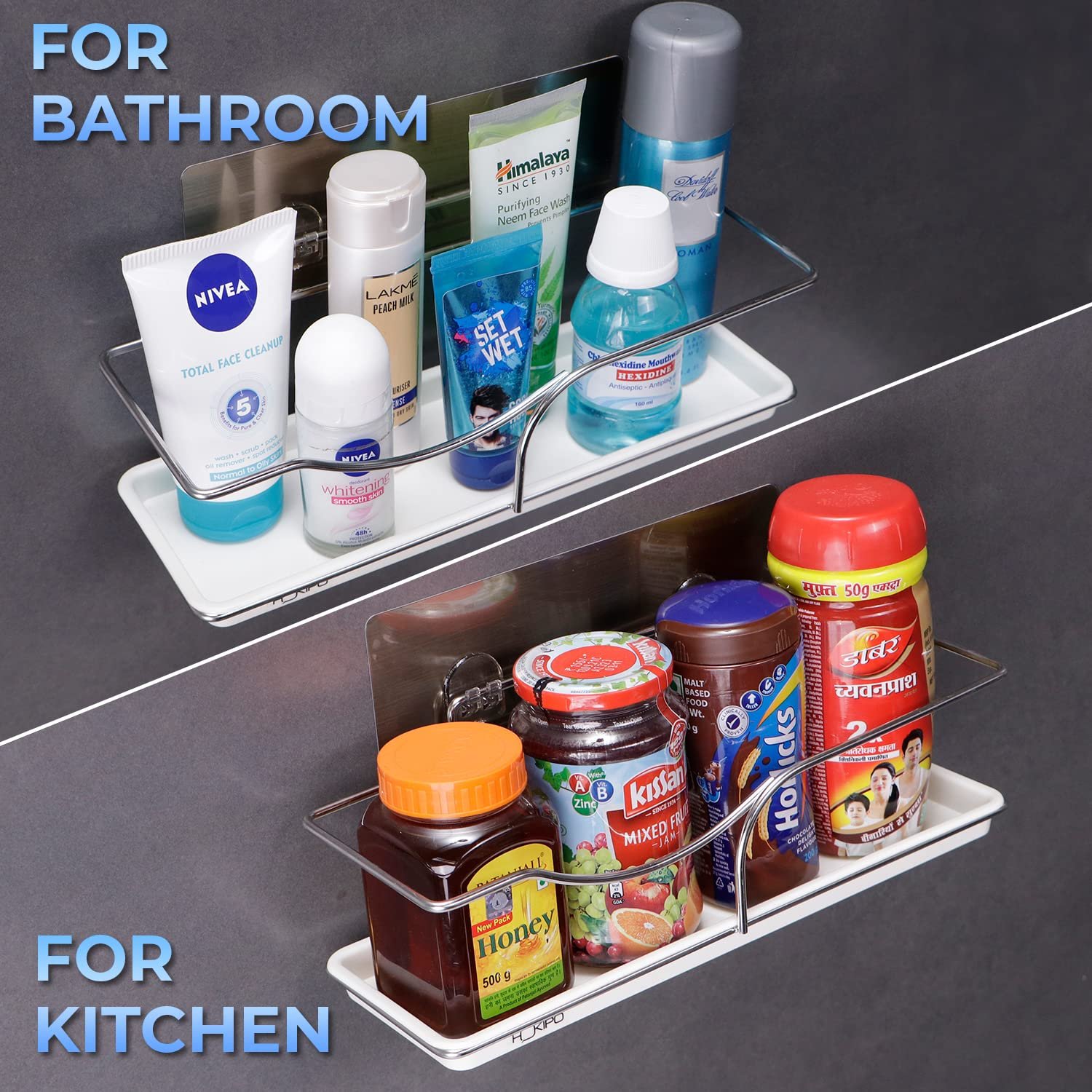 • WIDE APPLICATION: for using it in kitchen, bathrooms and anywhere you like. This kitchen bathroom storage shelves can be used to organize spice shampoo, shower gel, Lotion, soap, razor, spice bottles, sauce, and other kitchen and bathroom accessories