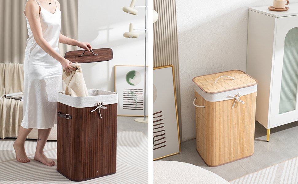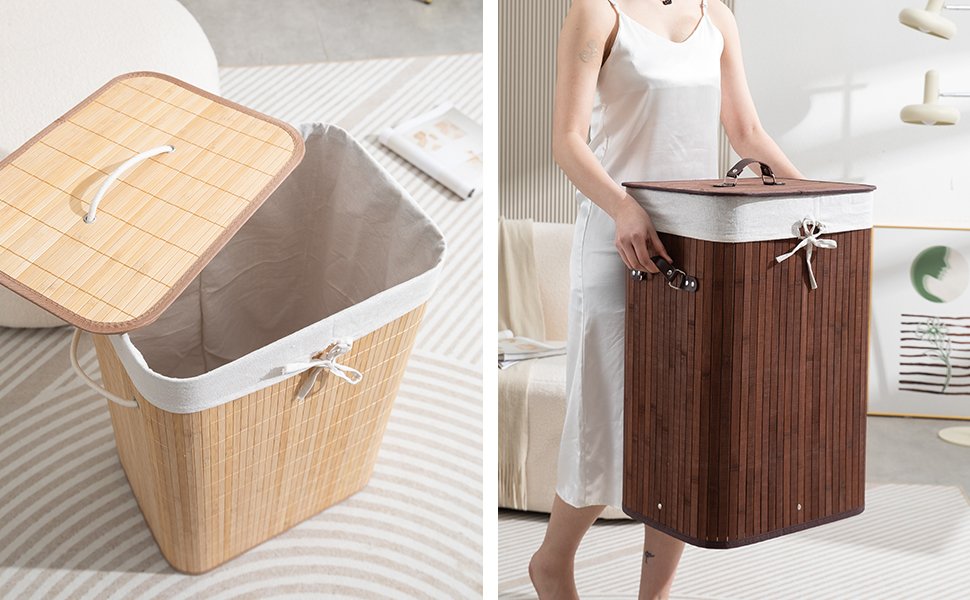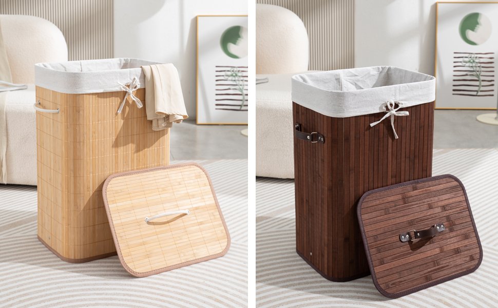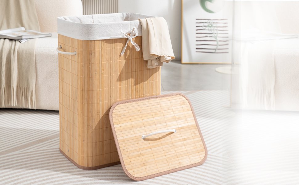 - Eco-Friendly Construction: Made from natural bamboo and environmentally friendly linen, offering a sustainable and elegant laundry storage solution.