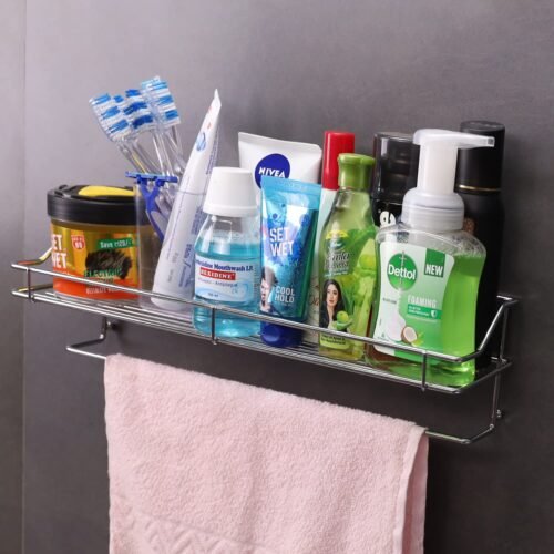 - Size & Dimensions – 40 × 11.2 × 10 cm. Package includes 1 Chrome Shelf with integrated towel bar.