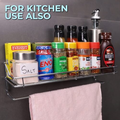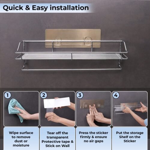 - Sturdy & Durable – This Self adhesive kitchen bathroom shelf is made of premium chrome-plated metal with a 5 kg load capacity, ensuring reliable everyday use.