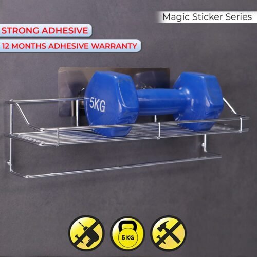 Upgrade your kitchen and bathroom storage with this Magic Sticker Series Self-Adhesive Shelf & Towel Holder. Built with durable chrome-plated metal and an advanced adhesive system, this wall-mounted rack offers maximum strength without damaging your walls.