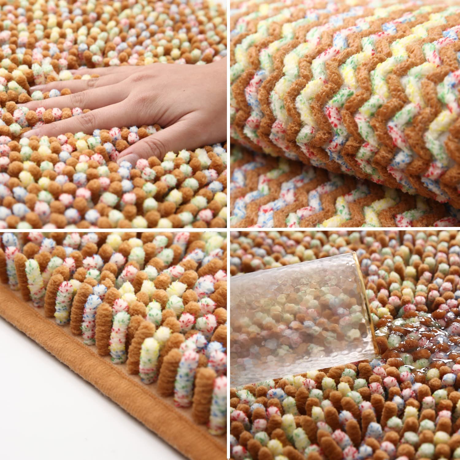 - SUPER ABSORBENT: Made with Chenille fabric, it absorbs water quickly, thereby leaving your feet Superdry and warm. It also keeps the doormats free from moulds and fungus. Its crafted from thick and velvety microfiber chenille which is super-soft and superabsorbent leaving you with complete confidence to step out of the shower.