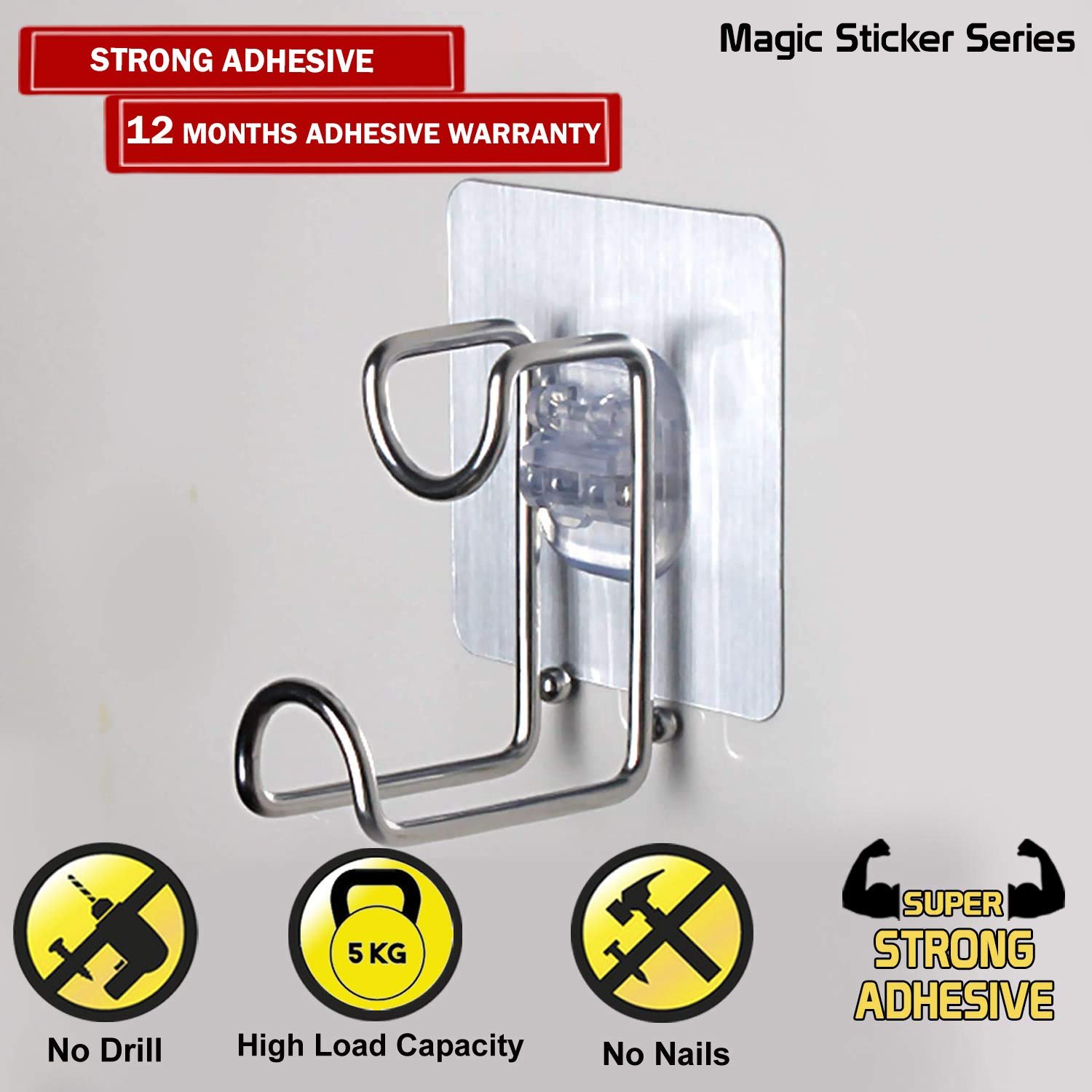 - No Drilling Required – Self-adhesive magic sticker design, installs easily on clean & smooth surfaces like tiles, marble, granite, glass, sunmica, veneer, or bakelite.